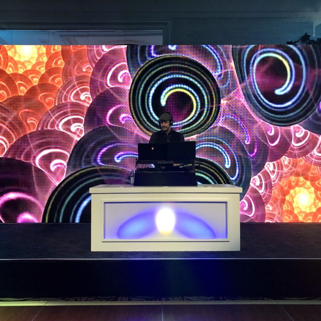 Next is our Giant Touch Screen DJ Console—a show-stopping centerpiece that brings a futuristic, high-tech vibe to any event. This massive interactive screen projects the DJ’s mixer and turntables in real time, transforming the performance into a visual experience that’s as exciting to watch as it is to hear. It’s the ultimate ‘eye candy’ for clients who want a setup that turns heads and leaves a lasting impression.”